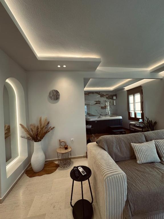 The highlight of Pnoe is its exclusive private spa area, complete with a jacuzzi and traditional hammam, offering a unique in-house wellness experience rarely found in Naxos. After a day of exploring, return to your own sanctuary for pure relaxation.